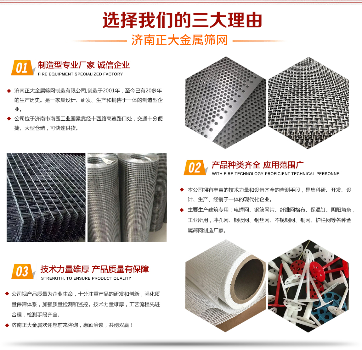 濟(jì)南正大金屬篩網(wǎng)制造有限公司,成立于2001年,至今已有20多年的生產(chǎn)歷史,主要生產(chǎn)建筑用:電焊網(wǎng)、鋼筋網(wǎng)片、纖維網(wǎng)格布、保溫釘、陰陽(yáng)角條,工業(yè)所用,沖孔網(wǎng)、鋼板網(wǎng)、鋼絲網(wǎng)、不銹鋼網(wǎng)、銅網(wǎng)、護(hù)欄網(wǎng)等各種金屬篩網(wǎng)制造廠家。 本公司擁有豐富的技術(shù)力量和設(shè)備齊全的查測(cè)手段,是集科研、開發(fā)、設(shè)計(jì)、生產(chǎn)、經(jīng)銷于一體的現(xiàn)代化企業(yè)。公司位于濟(jì)南市南園工業(yè)園緊靠經(jīng)十西路高速路口處,交通十分便捷。